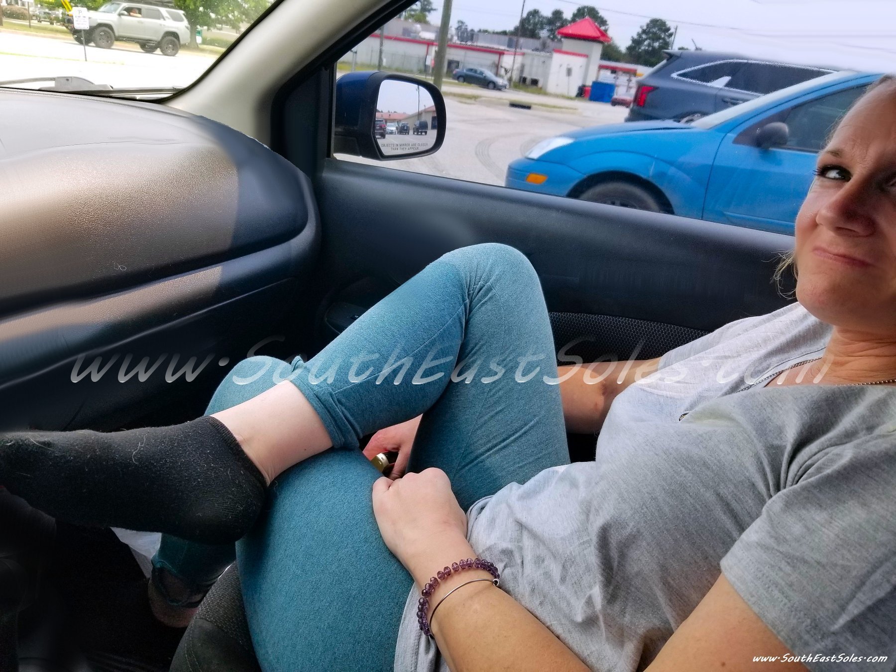 Description: A quick car ride and quick foot tease. |