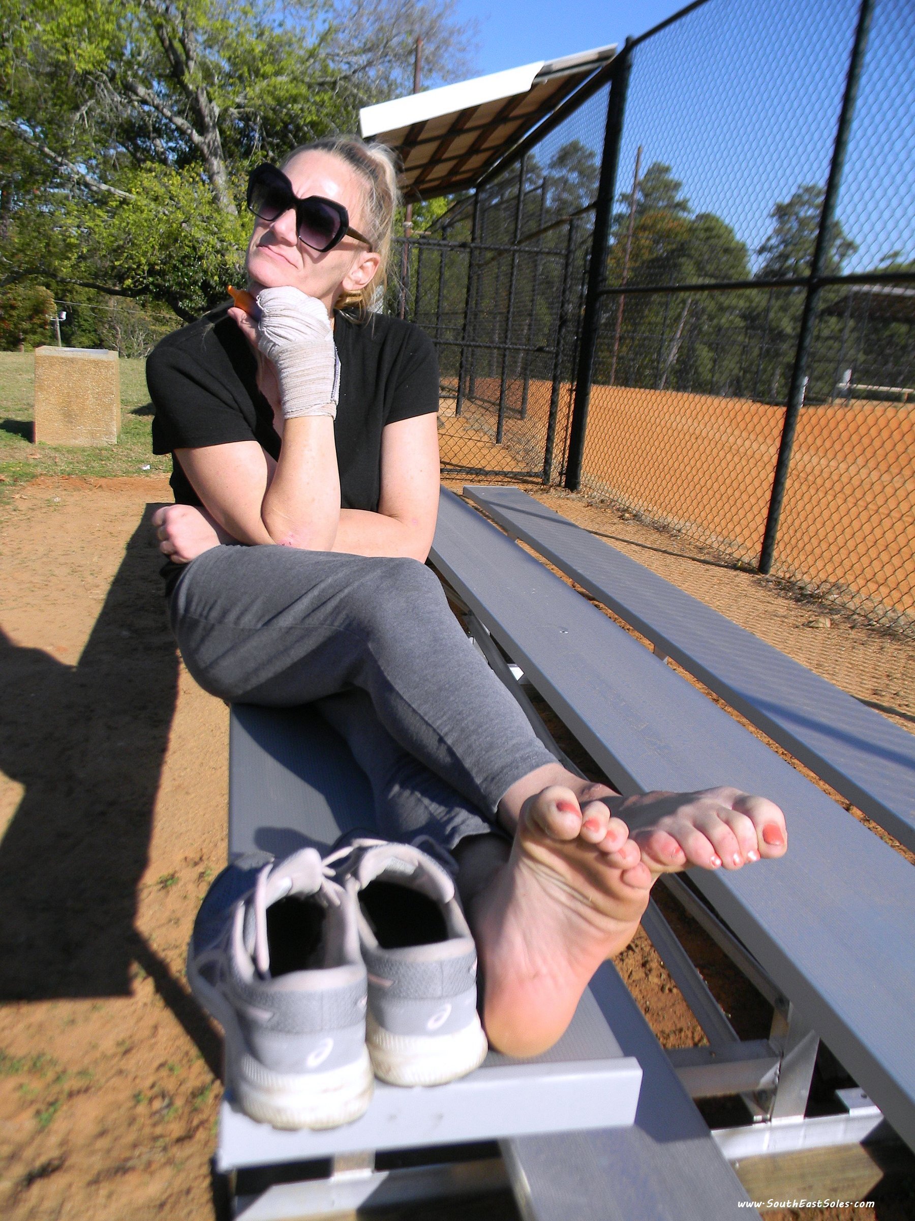 Description: A afternoon park foot show of her sweaty wrinkled soles pt3 |